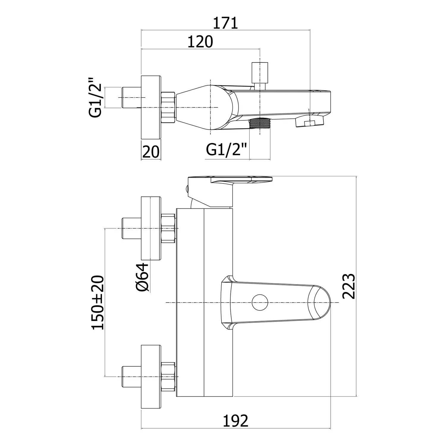 pianura Aora Badewannen-Einhebelmischer Aufputz mit Brauseanschluss