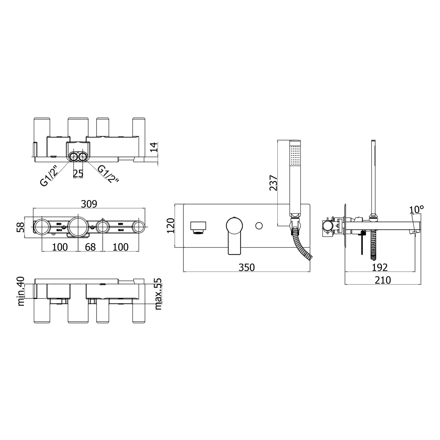 pianura Giulia Badewannenmodul Unterputz inkl. Grundkörper und Brausegarnitur