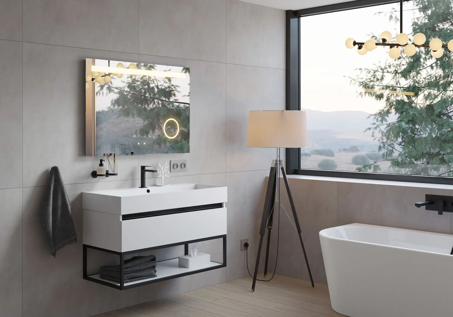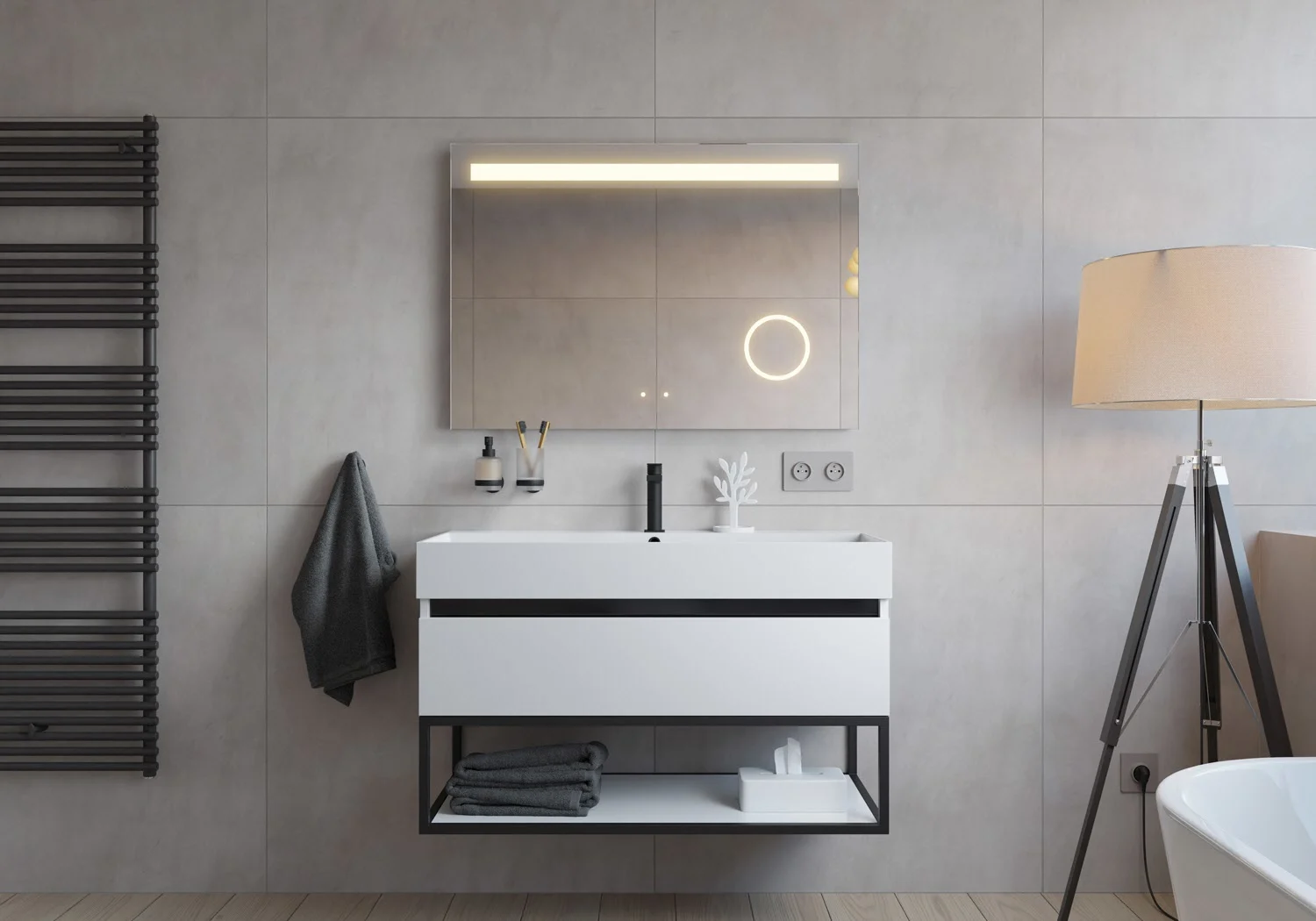 pianura Giulia Badmöbel Set 101 cm mit LED-Lichtspiegel, mit 1 Hahnloch