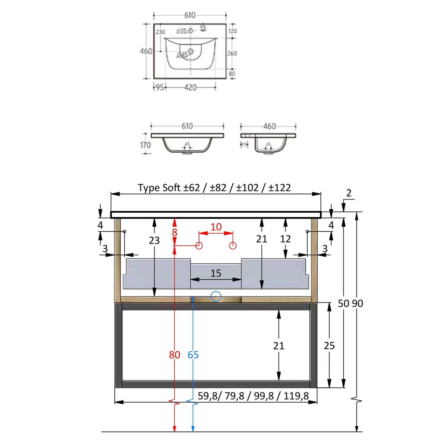 - B: 61 T: 46 H: 42 cm