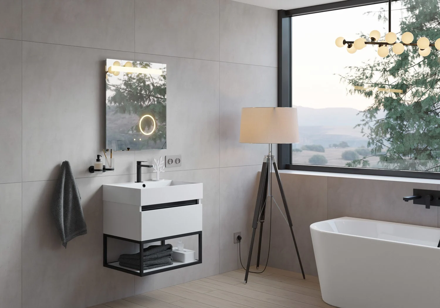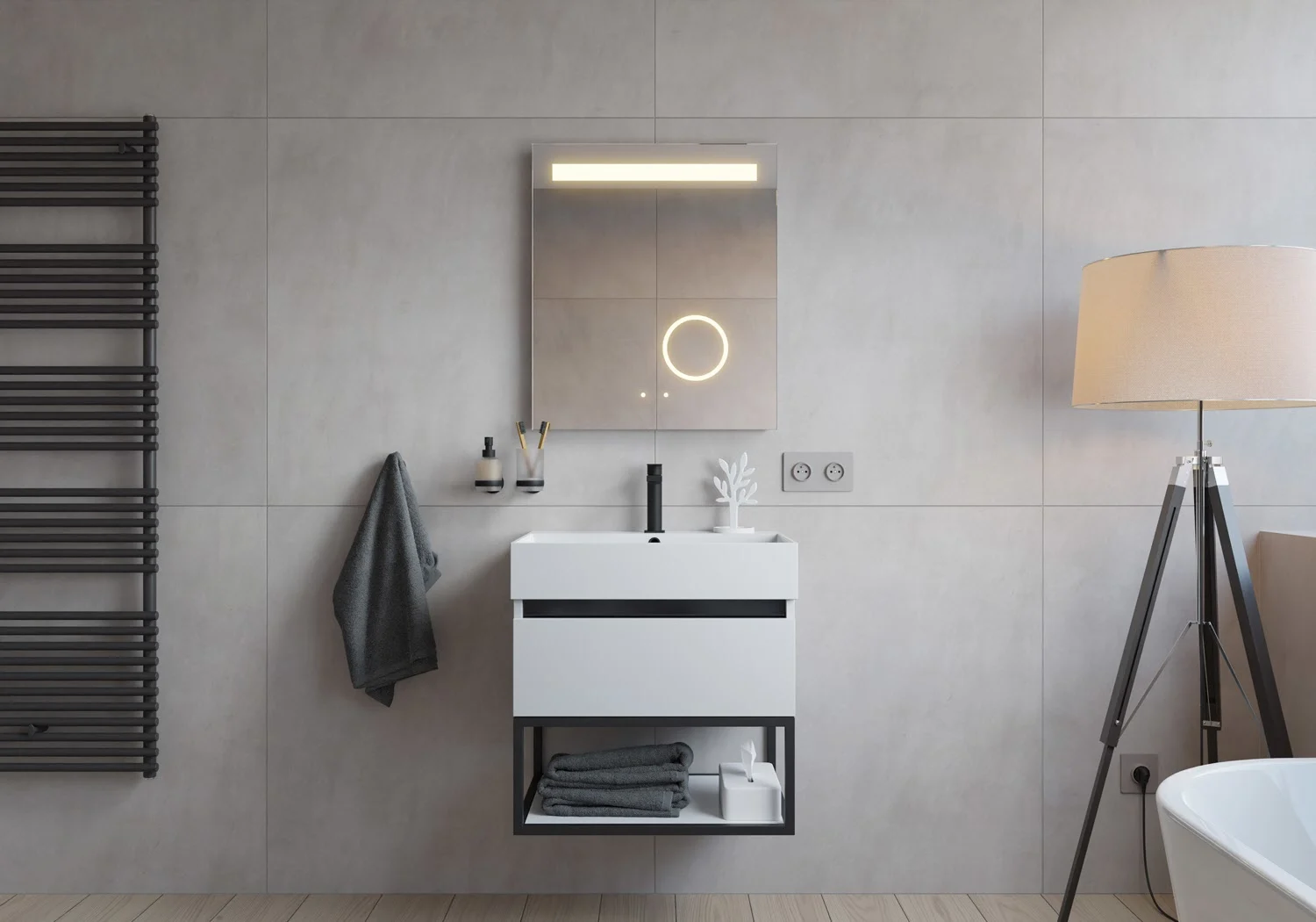pianura Giulia Badmöbel Set 61 cm mit LED-Lichtspiegel, mit 1 Hahnloch
