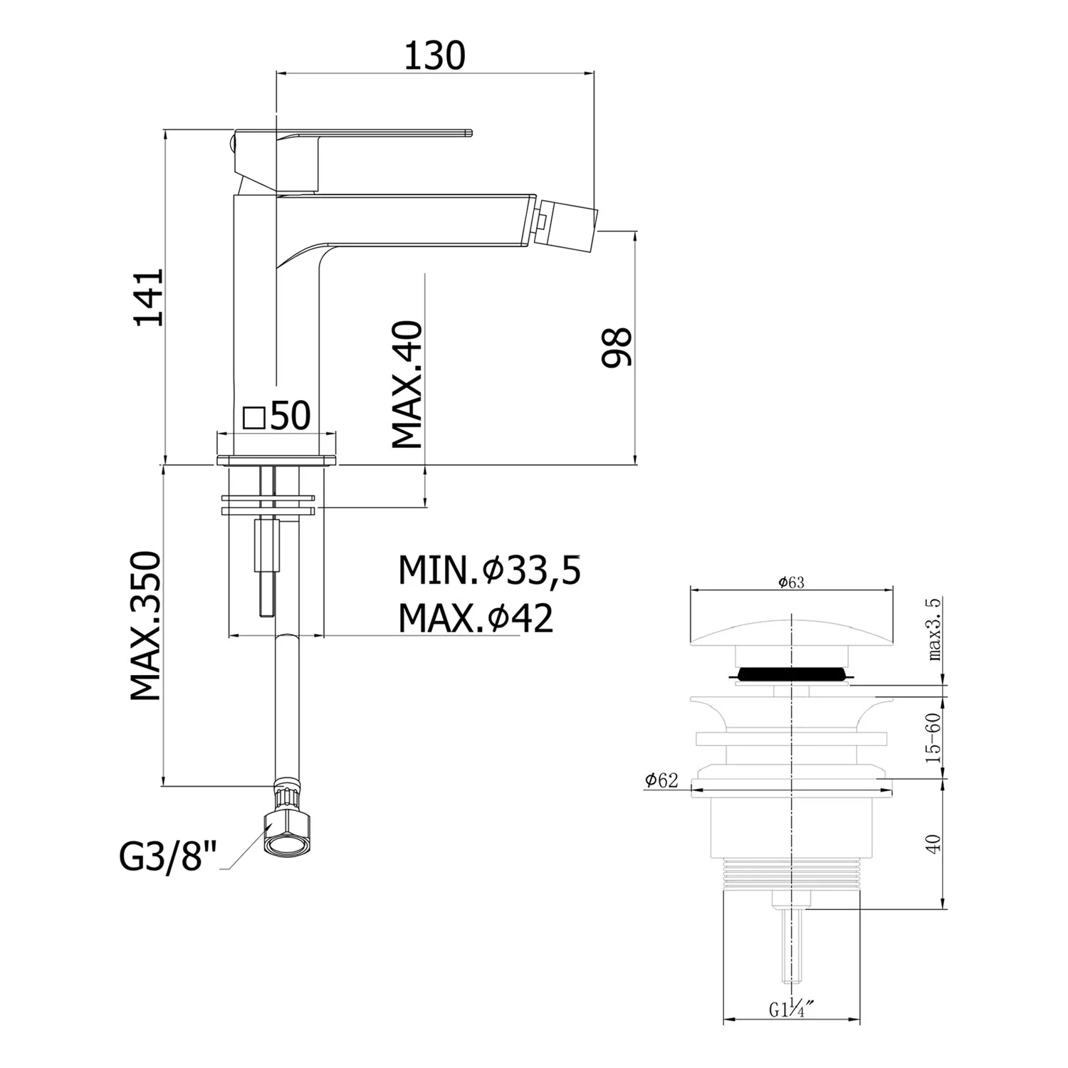 pianura Giulia Bidet-Einhebelmischer, wassersparend inkl. Pop Up Ablaufventil