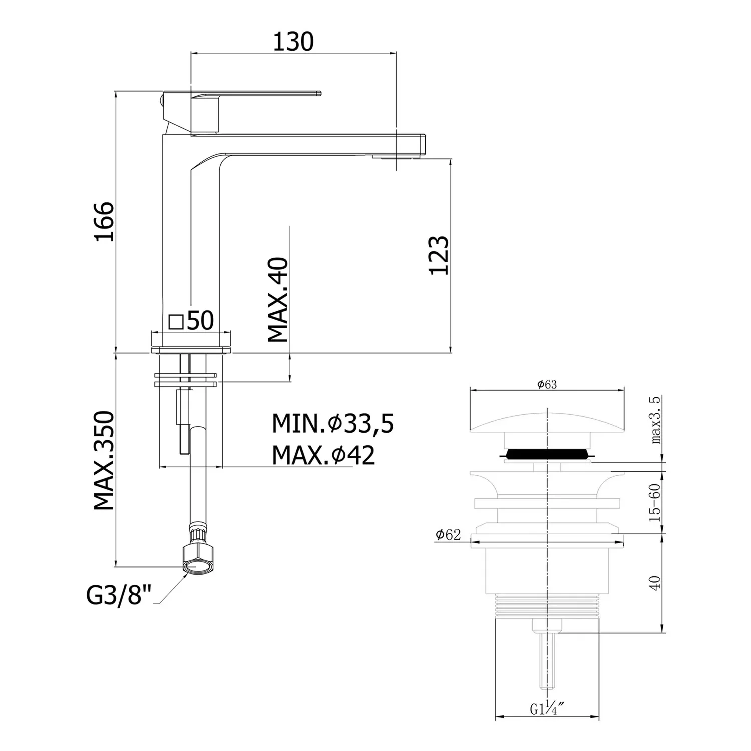 pianura Giulia Waschtisch-Einhebelmischer, wassersparend inkl. Pop Up Ablaufventil