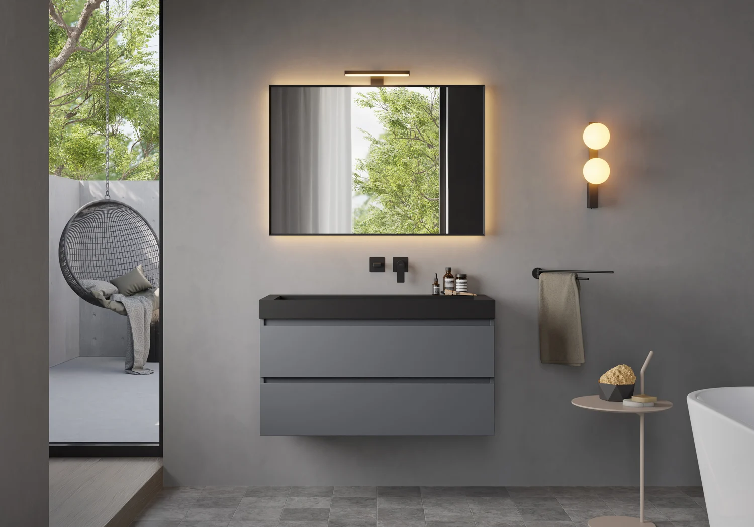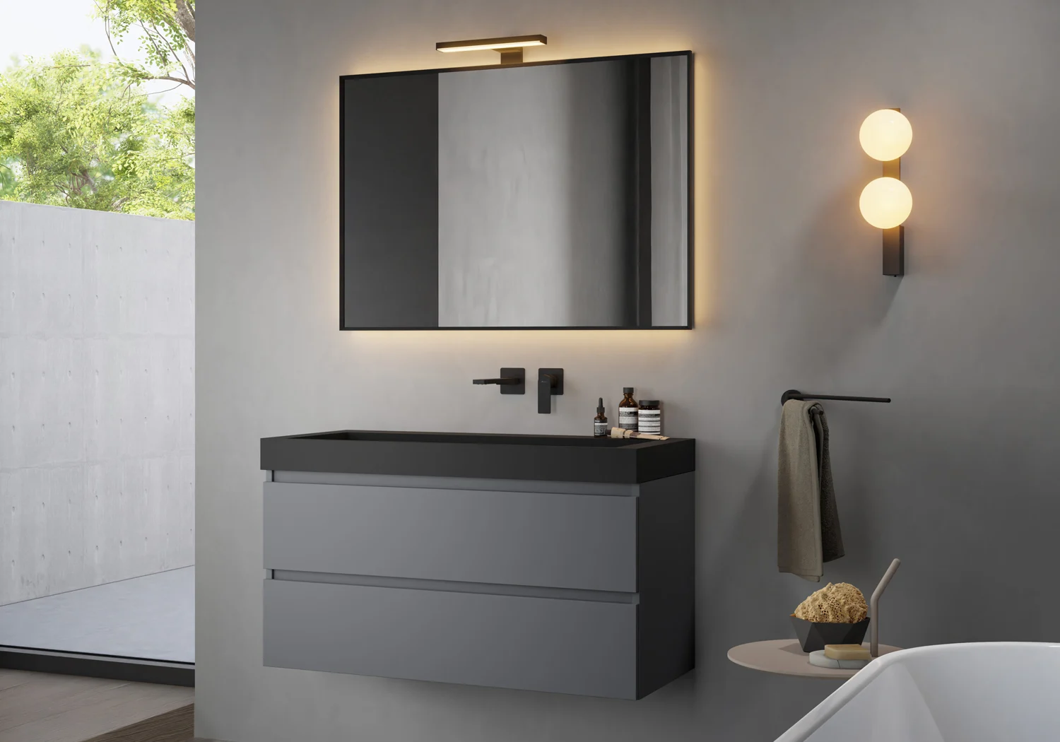 - edle matt schwarze Oberfläche für ihr modernes Bad