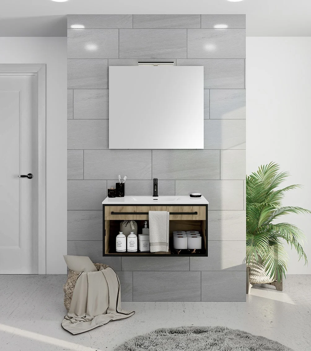 pianura Mia LED-Badspiegel in Schwarz mit den Maßen 80 x 70 cm