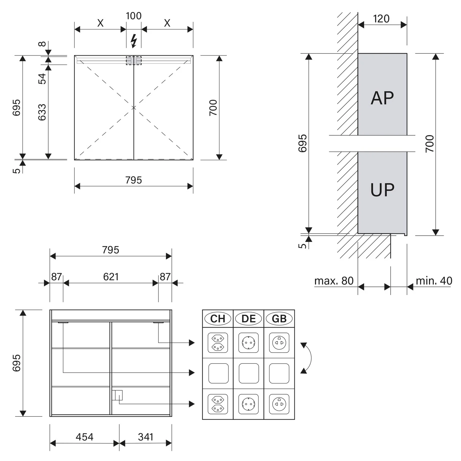 - Aufputz- oder Unterputz-Montage, maximale Einbautiefe 8 cm