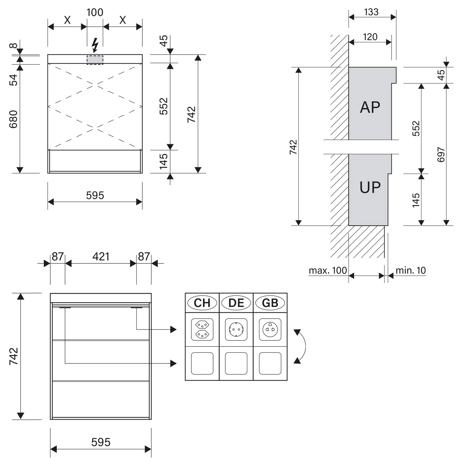 - Aufputz- oder Unterputz-Montage, maximale Einbautiefe 10 cm