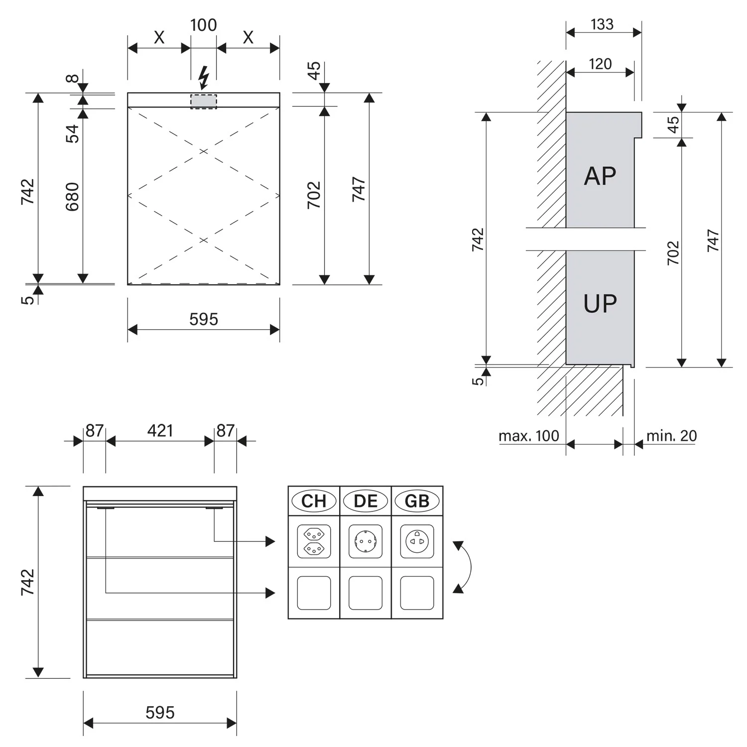 - Aufputz- oder Unterputz-Montage, maximale Einbautiefe 10 cm