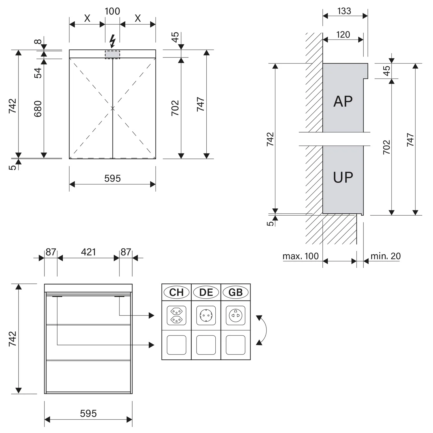 Schneider LOW basic LED Spiegelschrank LOB 60/2/DE 59,5 x 74,7 cm, 3000 K, DE