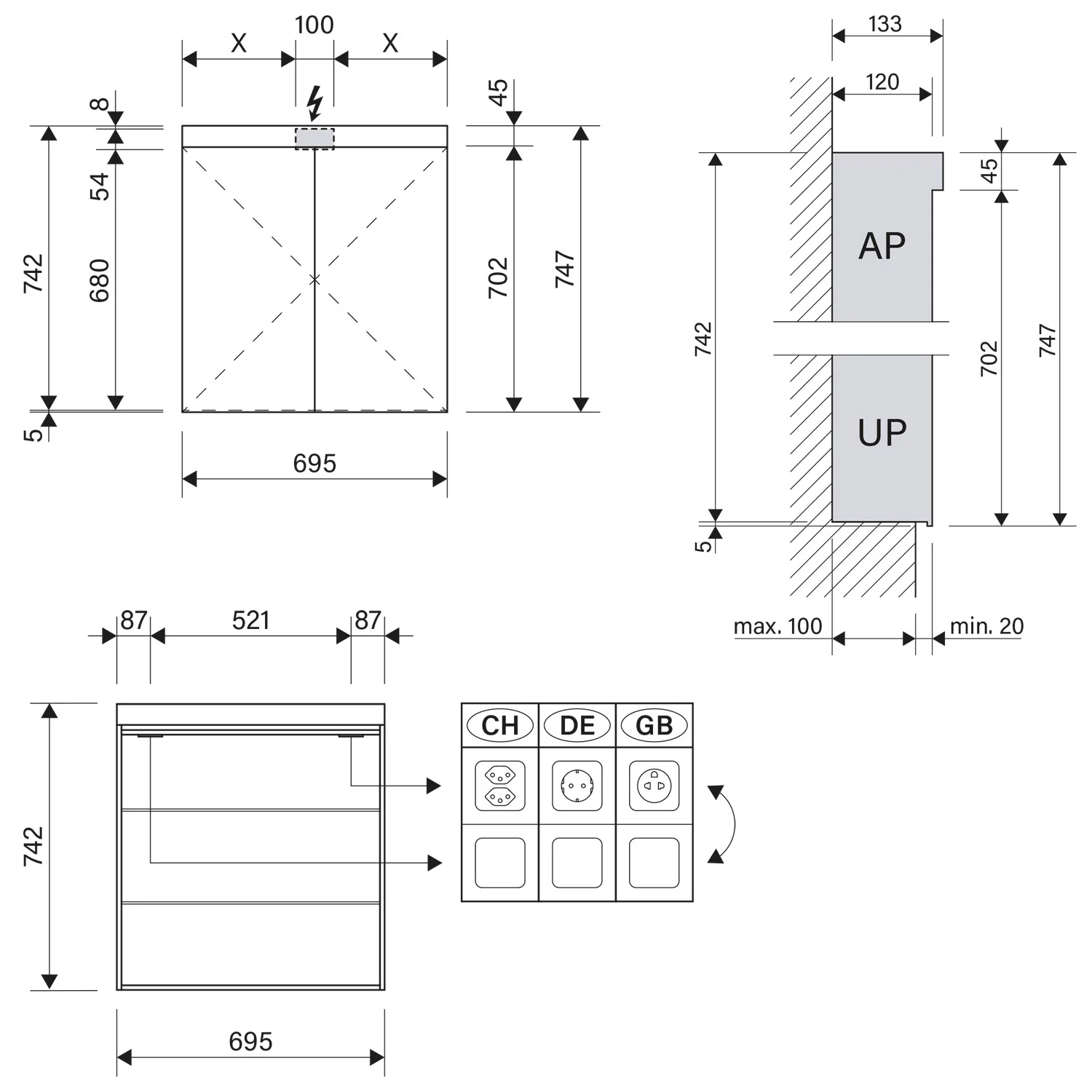 - Aufputz- oder Unterputz-Montage, maximale Einbautiefe 10 cm