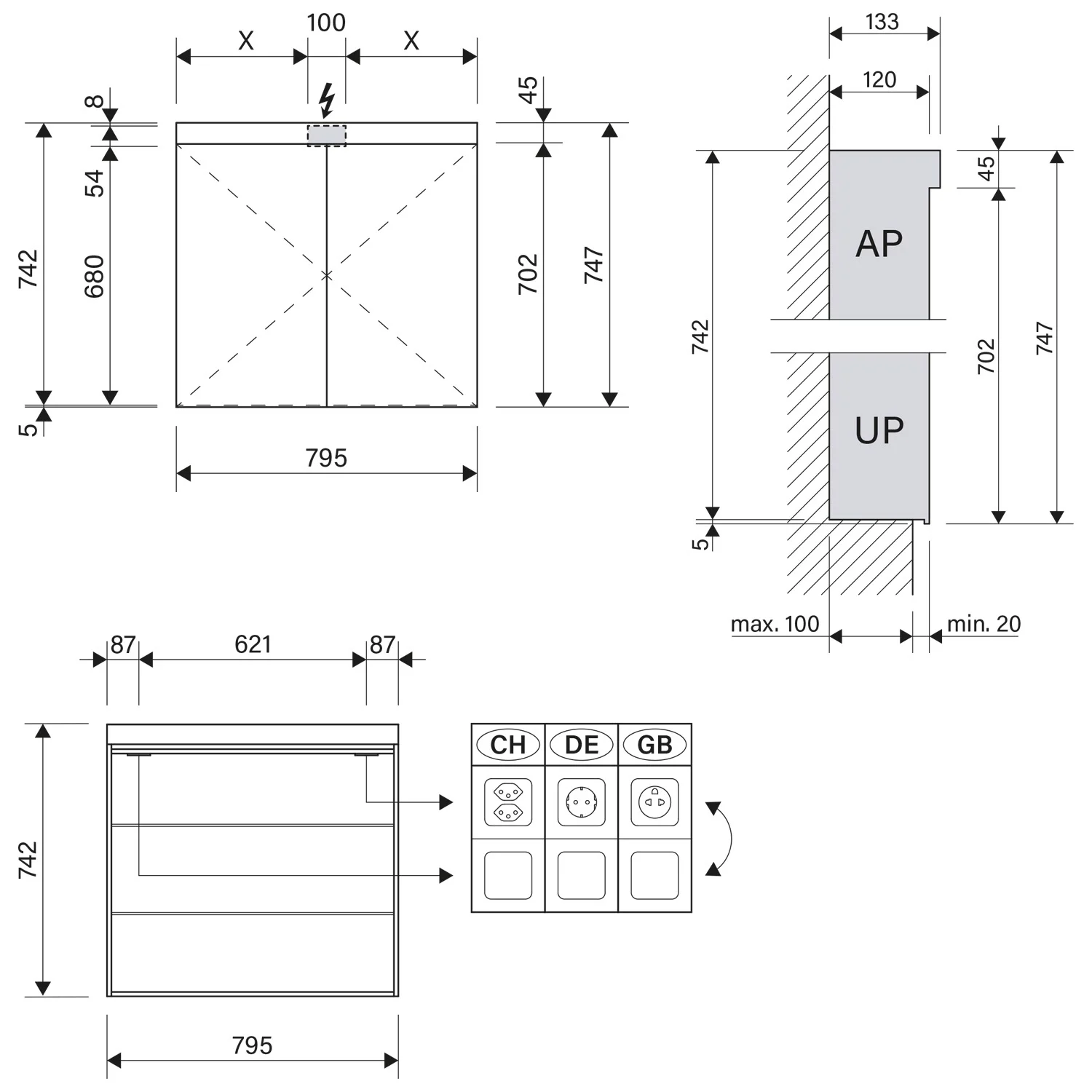 - Aufputz- oder Unterputz-Montage, maximale Einbautiefe 10 cm