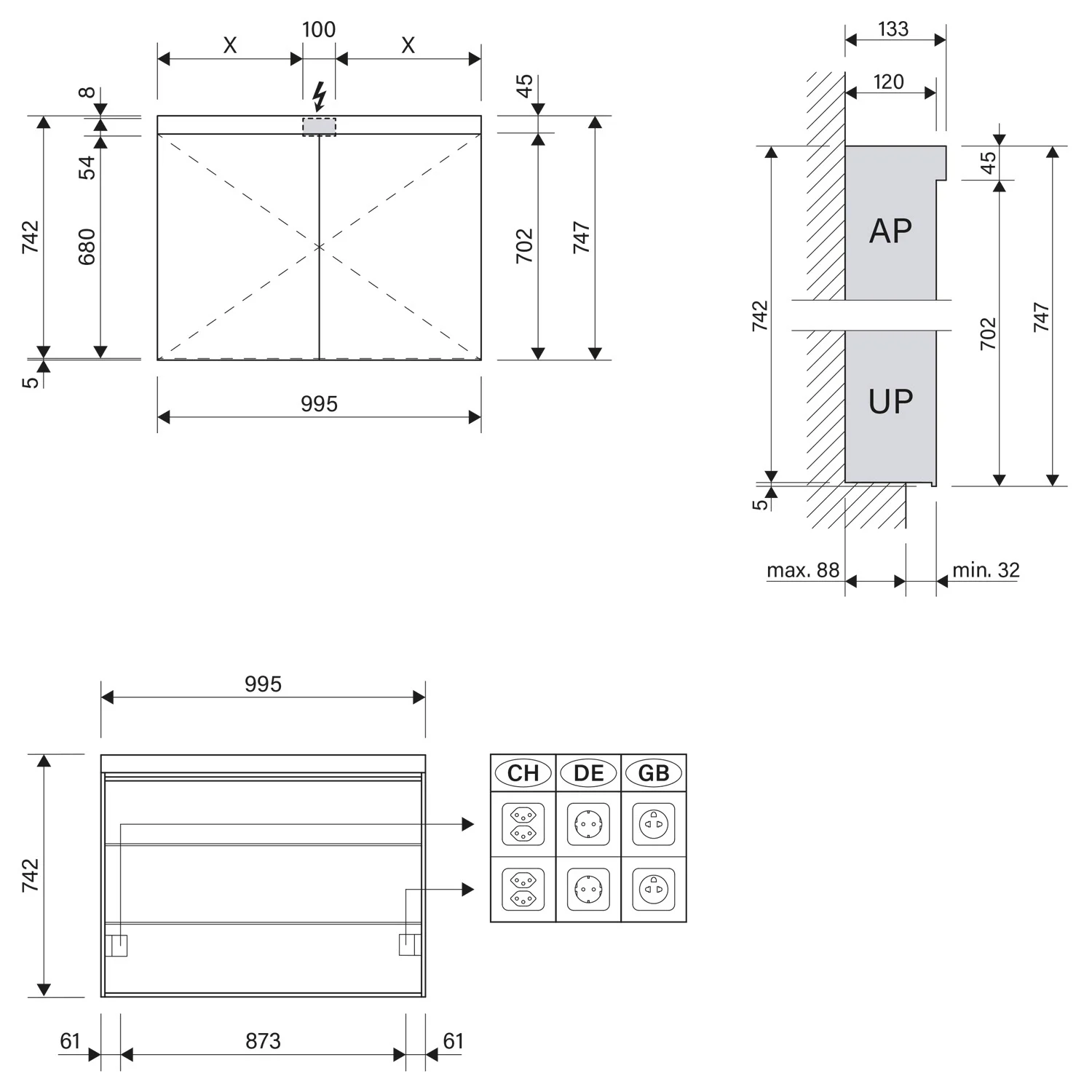 - Aufputz- oder Unterputz-Montage, maximale Einbautiefe 8 cm