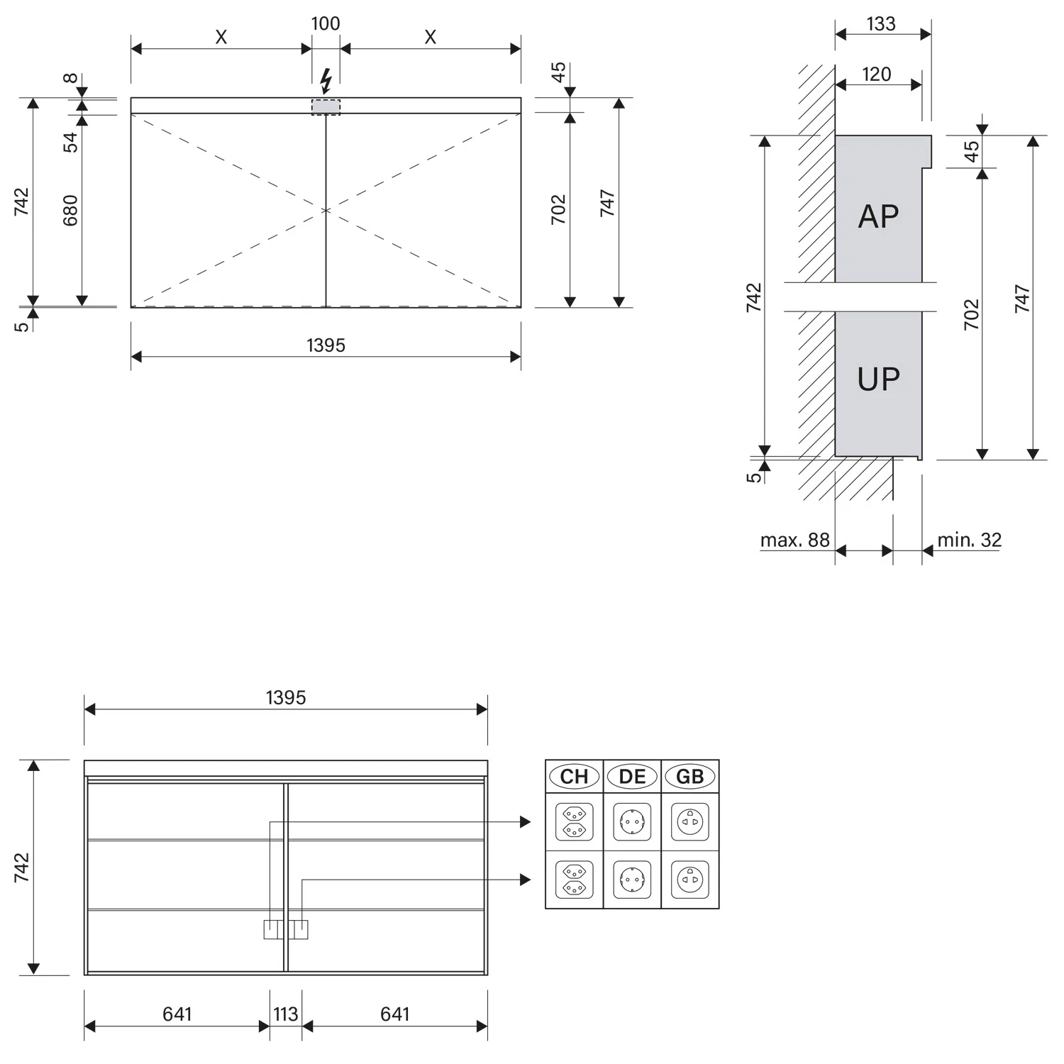 Schneider LOW plus LED Spiegelschrank LOP 140/2/LED 139,5 x 74,7 cm, 3000 K, 2 Steckdosen unten, DE