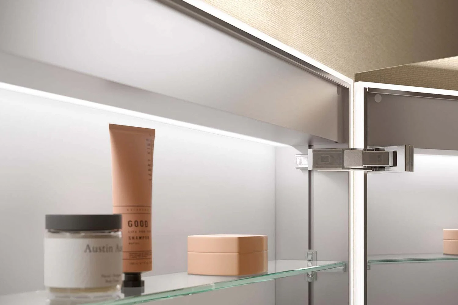 Immer das richtige Licht, morgens, abends, nachts. Sich beleben, sich entspannen. Die Spiegelschränke und Lichtspiegel von Schneider machen Ihr Bad zum Wohlfühlort. Ästhetik und Design, das im Raum zu schweben scheint. Das sanfte, indirekte Licht von STYLE unterstreicht ein modernes und stilvolles Ambiente, für einen Ort der Entspannung.