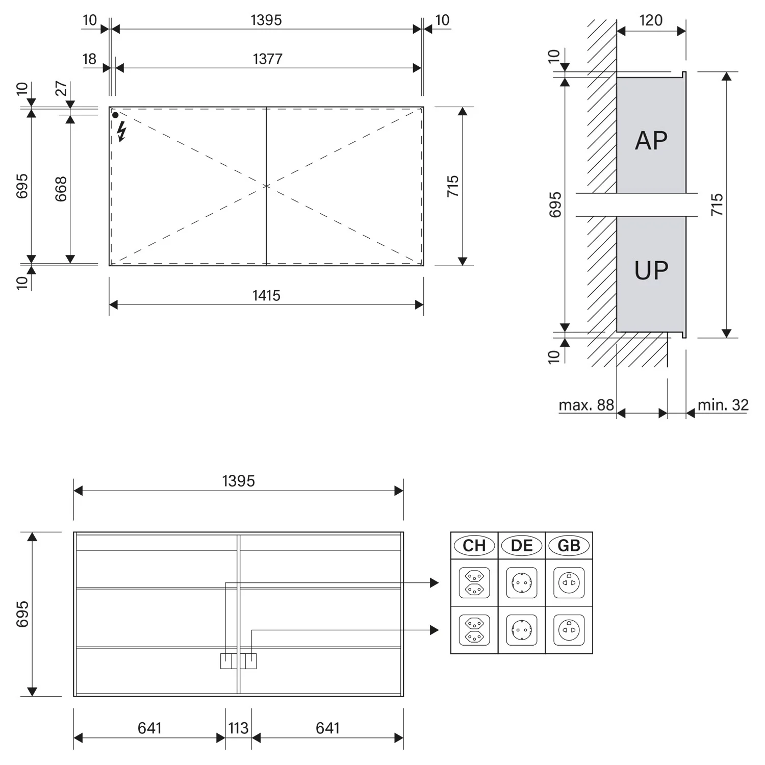 - Aufputz- oder Unterputz-Montage, maximale Einbautiefe 8,8 cm