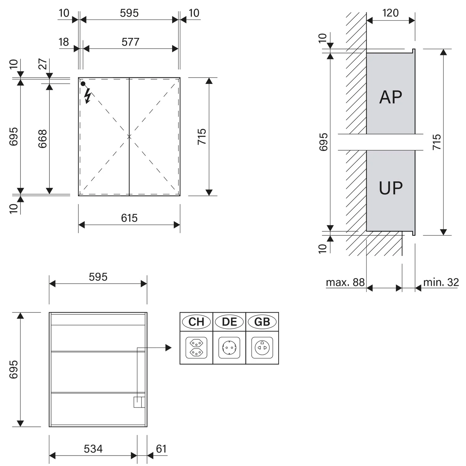 Schneider STYLE TW Spiegelschrank ALC2 60/2/TW/R 61,5 x 71,5 cm, DE