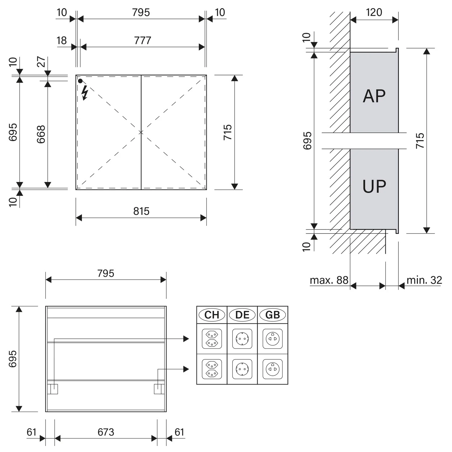 - Aufputz- oder Unterputz-Montage, maximale Einbautiefe 8,8 cm