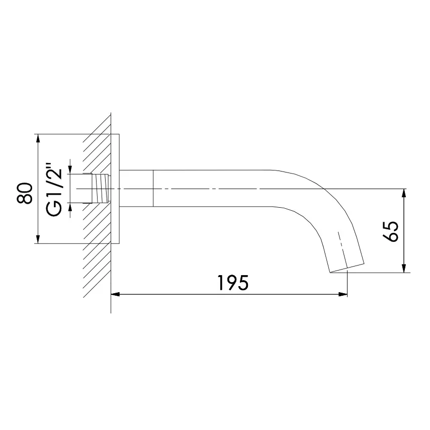 Steinberg Serie 100 Auslauf für Waschtisch oder Wanne Ausladung 19,5 cm