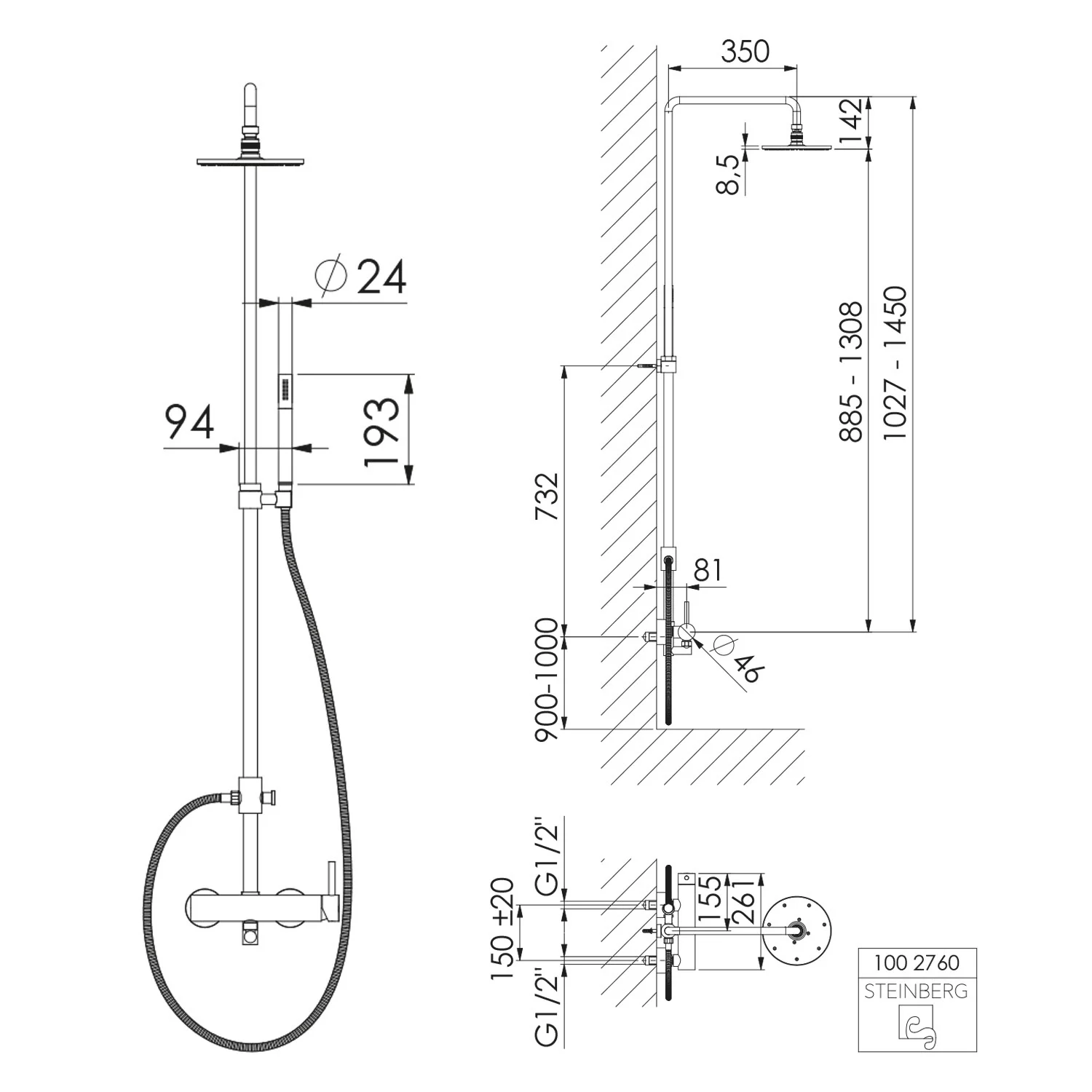 Steinberg Serie 100 Brauseset mit Einhebelmischbatterie
