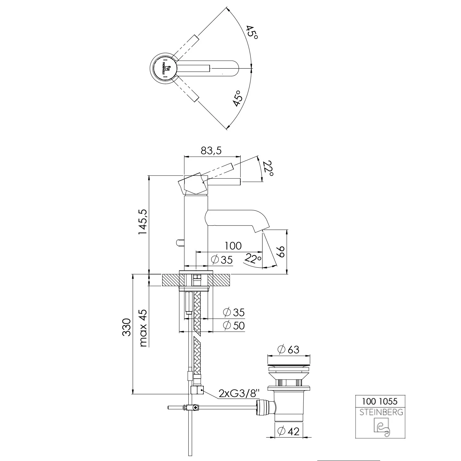 Steinberg Serie 100 Waschtisch-Einhebelmischbatterie mit Ablaufgarnitur