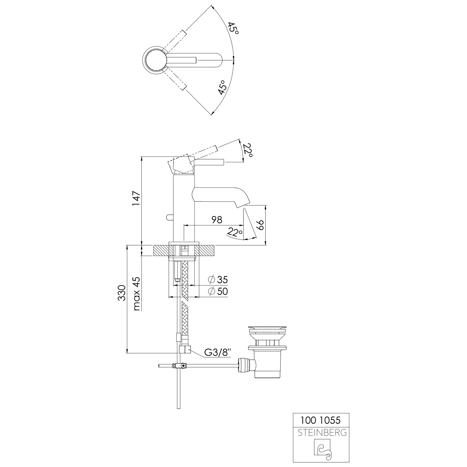 Steinberg Serie 100 Waschtisch-Einhebelmischbatterie mit Ablaufgarnitur