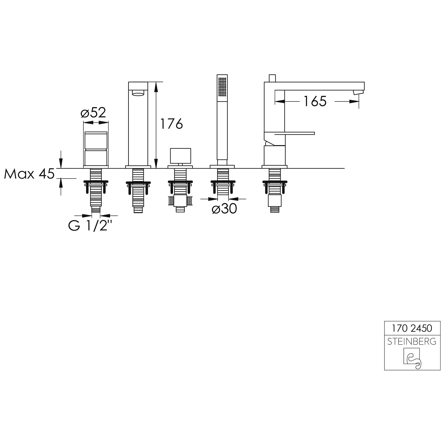 Steinberg Serie 170 4-Loch Wannen-Einhebelmischbatterie