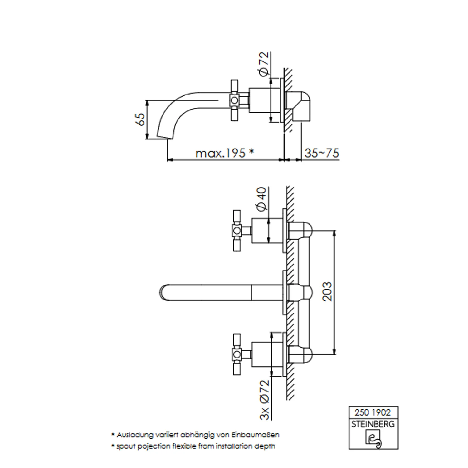 Steinberg Serie 250 3-Loch Waschtischarmatur zur Wandmontage