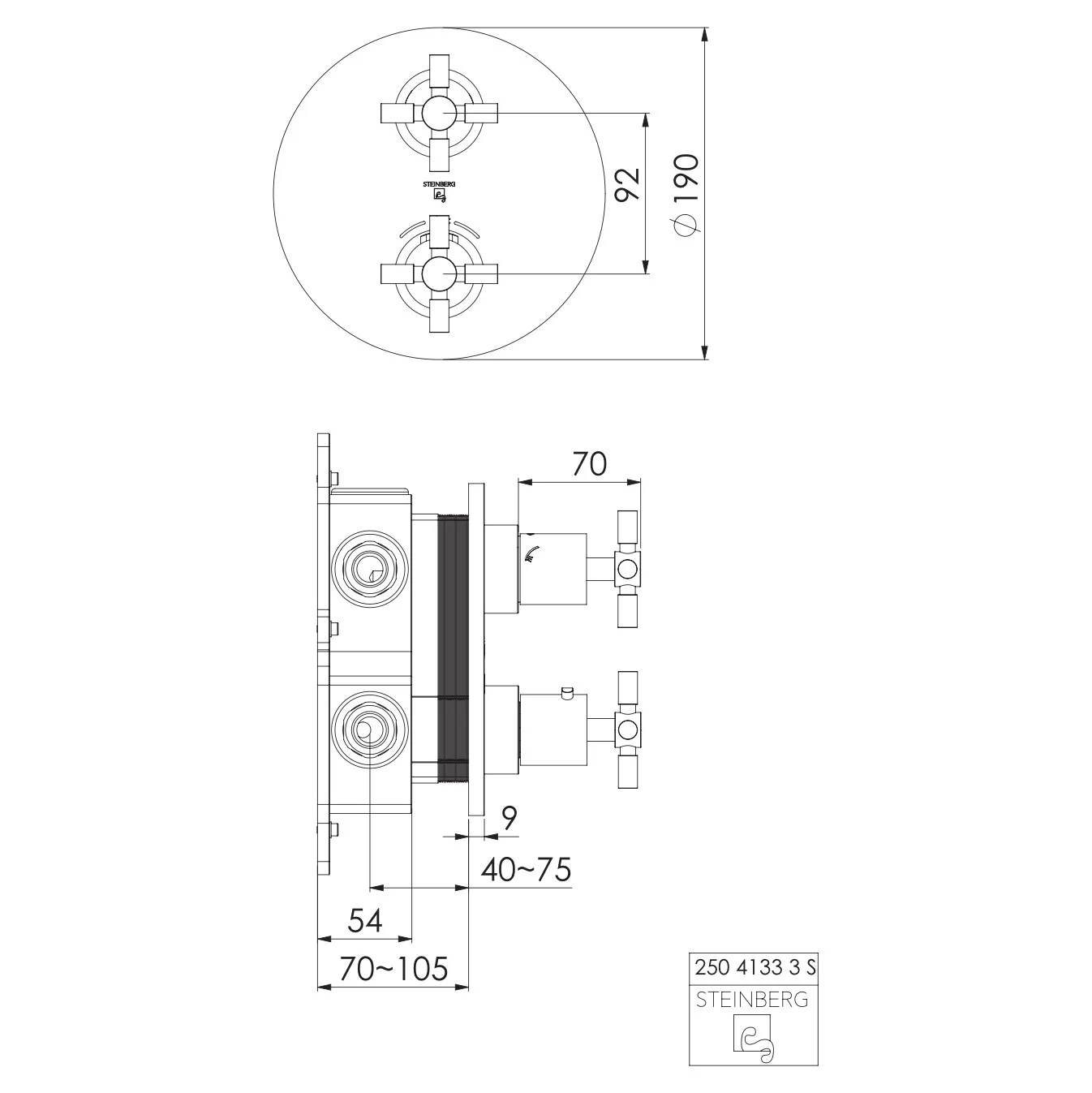 Steinberg Serie 250 Fertigmontageset zu Unterputzthermostat mit 2-Wege Umsteller