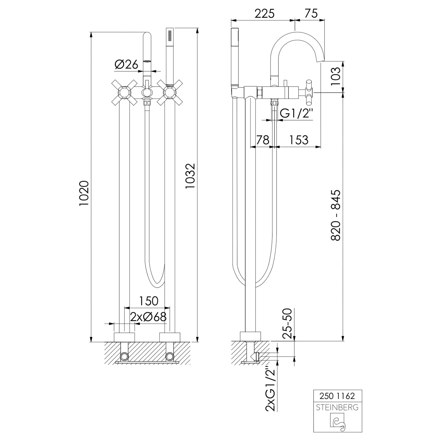 Steinberg Serie 250 Freistehende Wannenarmatur