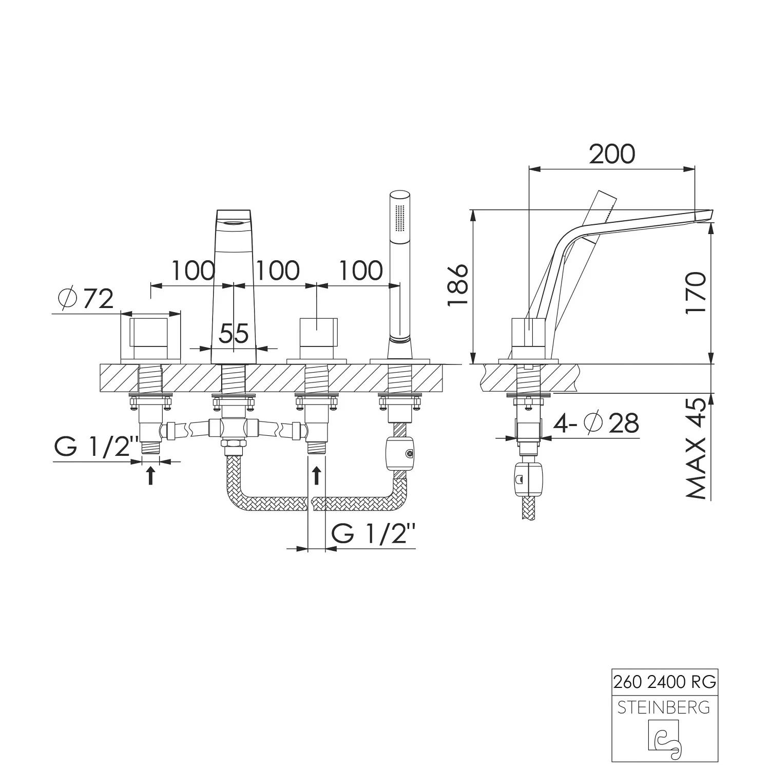 Steinberg Serie 260 4-Loch Wanne/Brause-Standarmatur mit Auslauf