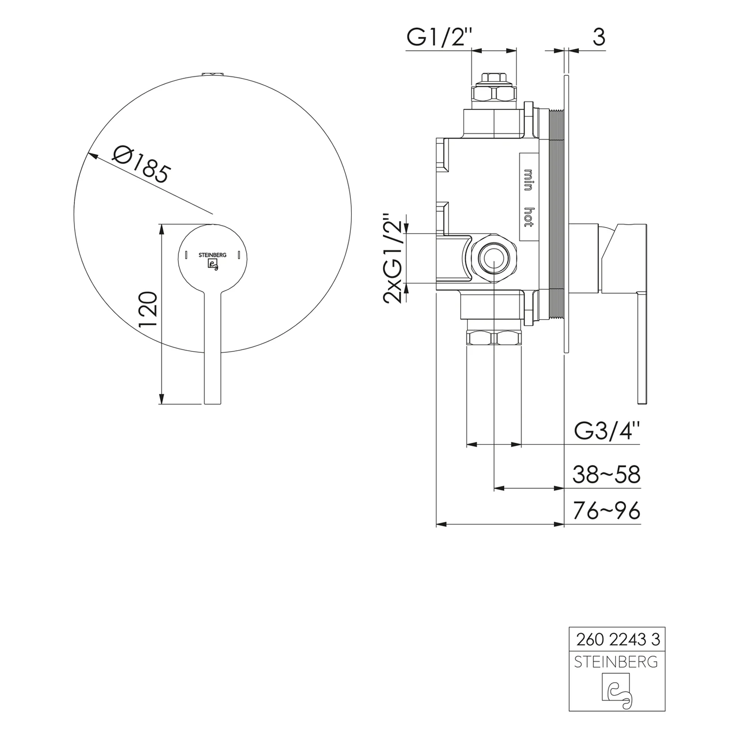 Steinberg Serie 260 Fertigmontageset Brause Einhebelmischer Unterputz