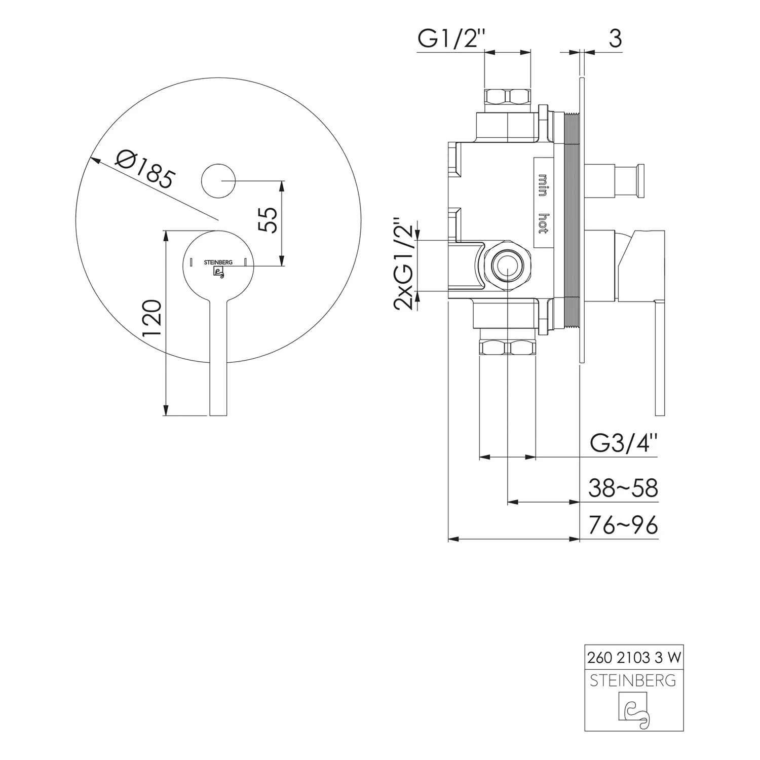 Steinberg Serie 260 Fertigmontageset Wanne-/Brausearmatur Unterputz
