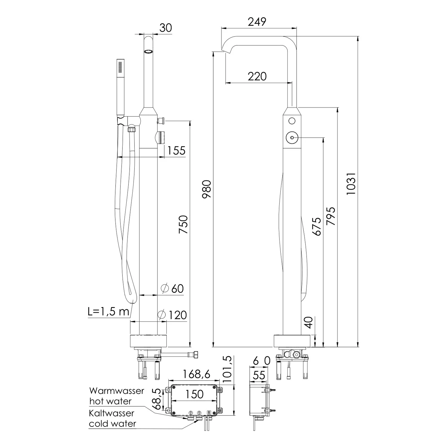 Steinberg Serie 310 freistehende Wannenarmatur mit elektronischer Bedienung