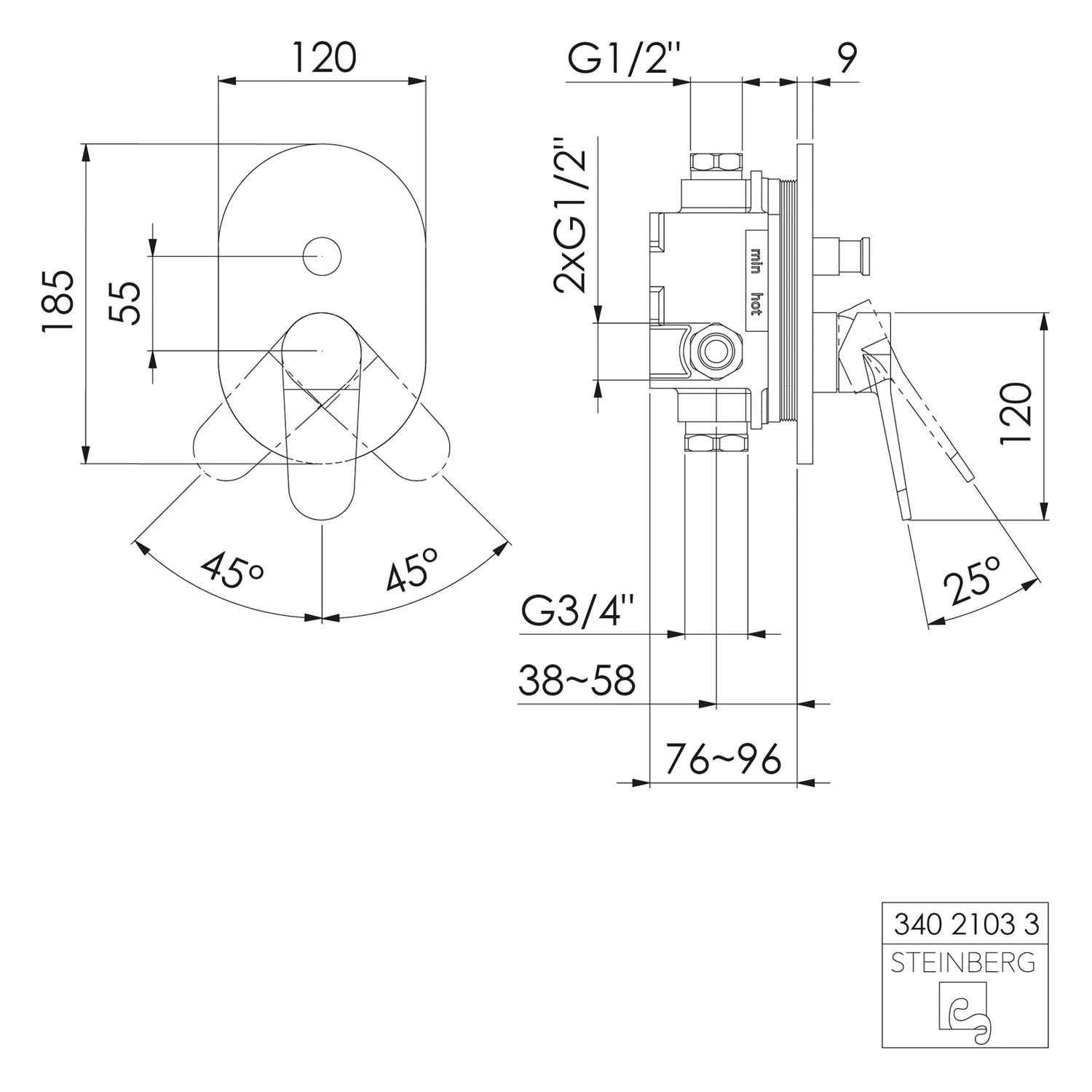 Steinberg Serie 340 Fertigmontageset für Wanne/Brause-Einhebelmischer