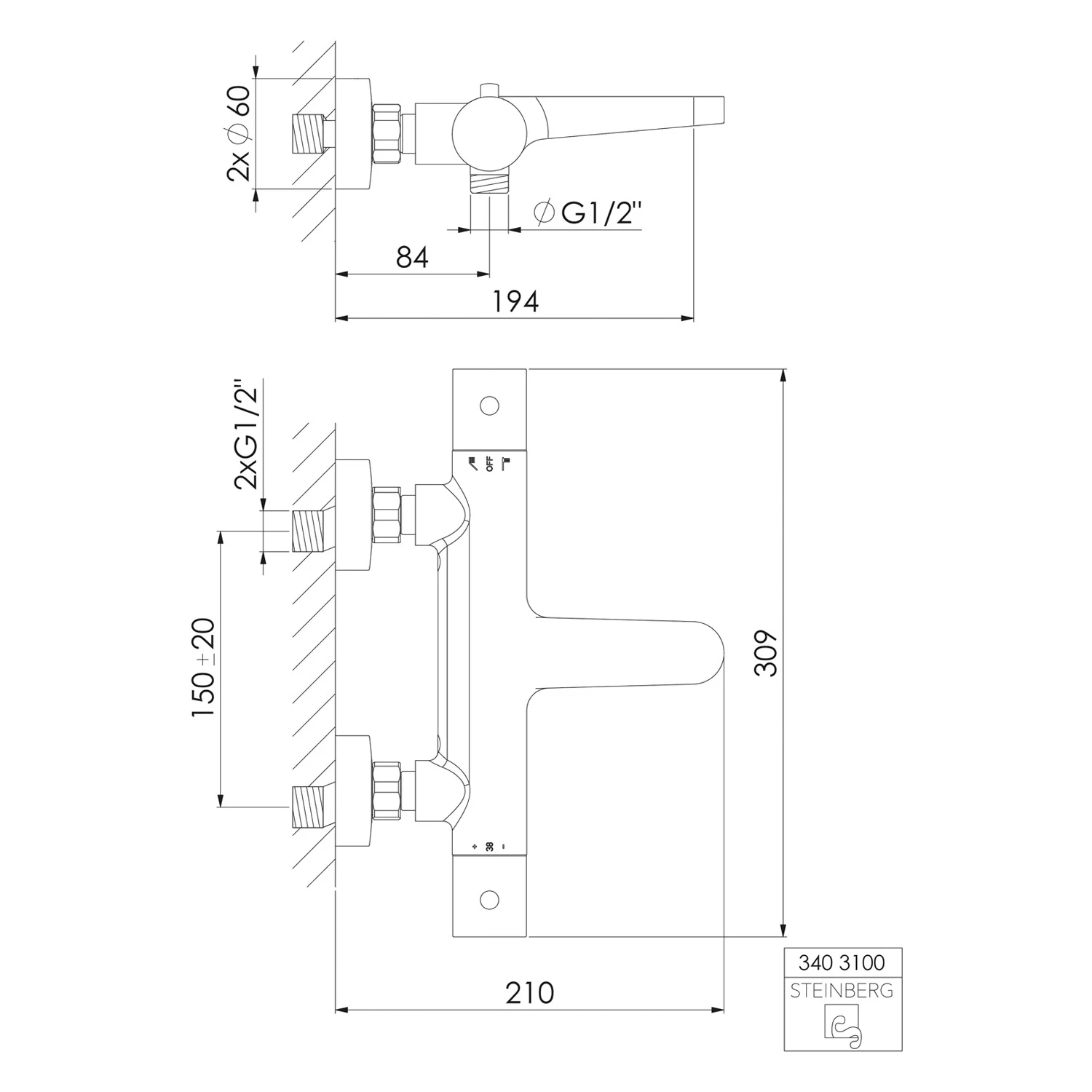 Steinberg Serie 340 Wanne/Brause-Aufputz-Thermostat