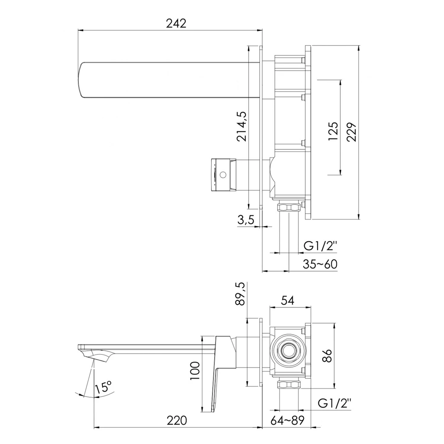Steinberg Serie 342 Waschtisch-Wand-Einhebelmischer, Fertimontageset