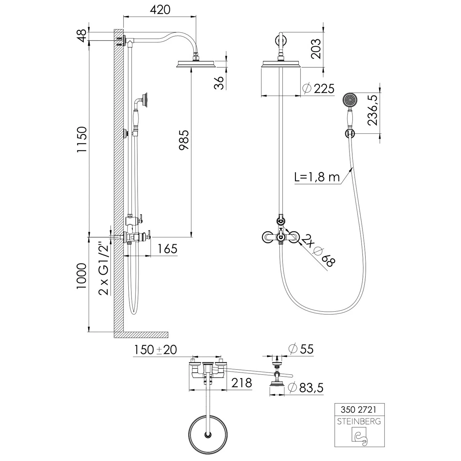Steinberg Serie 350 Brauseset, komplett mit Thermostatarmatur, mit Regenbrause und Handbrause
