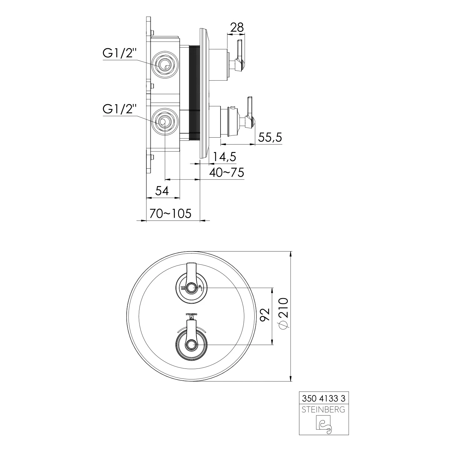 Steinberg Serie 350 Fertigmontageset für Unterputzthermostat mit 2-Wege-Umsteller