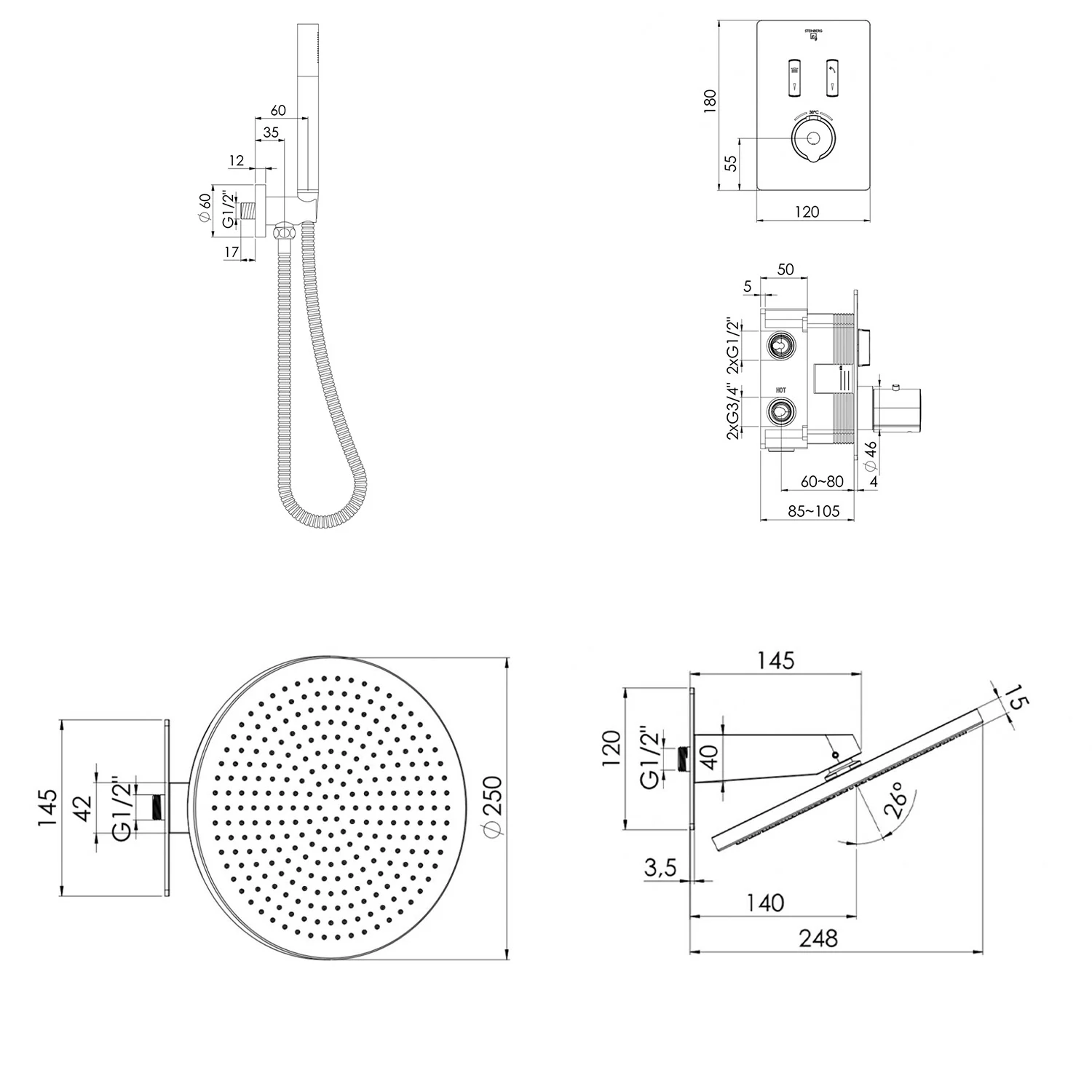 - mit Halter, Stabhandbrause und Brauseschlauch 150 cm