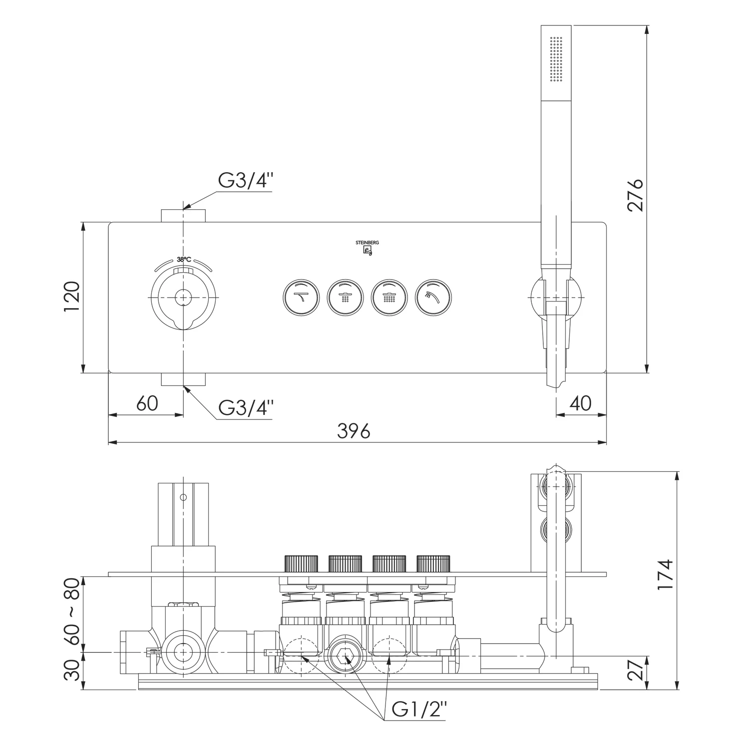 Steinberg Serie 390 Unterputz-Thermostat 3/4"