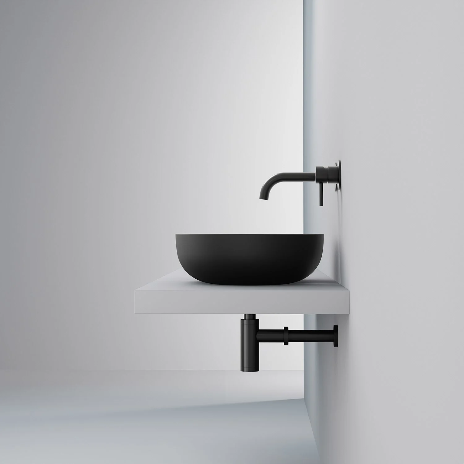 Steinberg-Produkt in tiefem Mattschwarz. Durch ein aufwendiges Verfahren wird eine makellos glatte, aber dennoch matte Oberfläche erreicht. Das Ergebnis ist eine maximal korrosionsbeständige, tiefschwarze Oberfläche mit sanften und ruhigen Lichtreflexen.