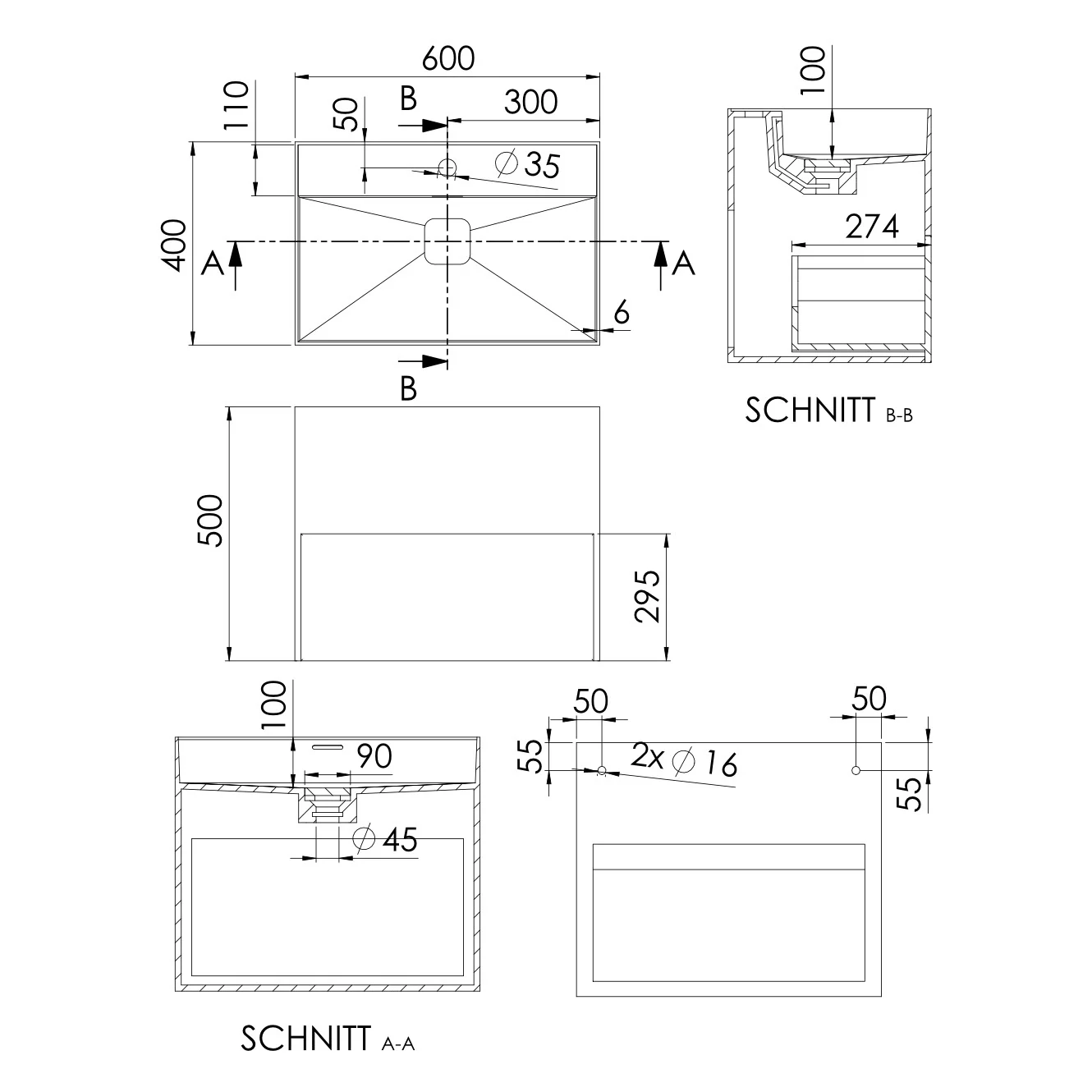Steinberg Serie 443 Wandwaschtisch mit 1 Auszug aus Mineo Stone 60 x 40 cm