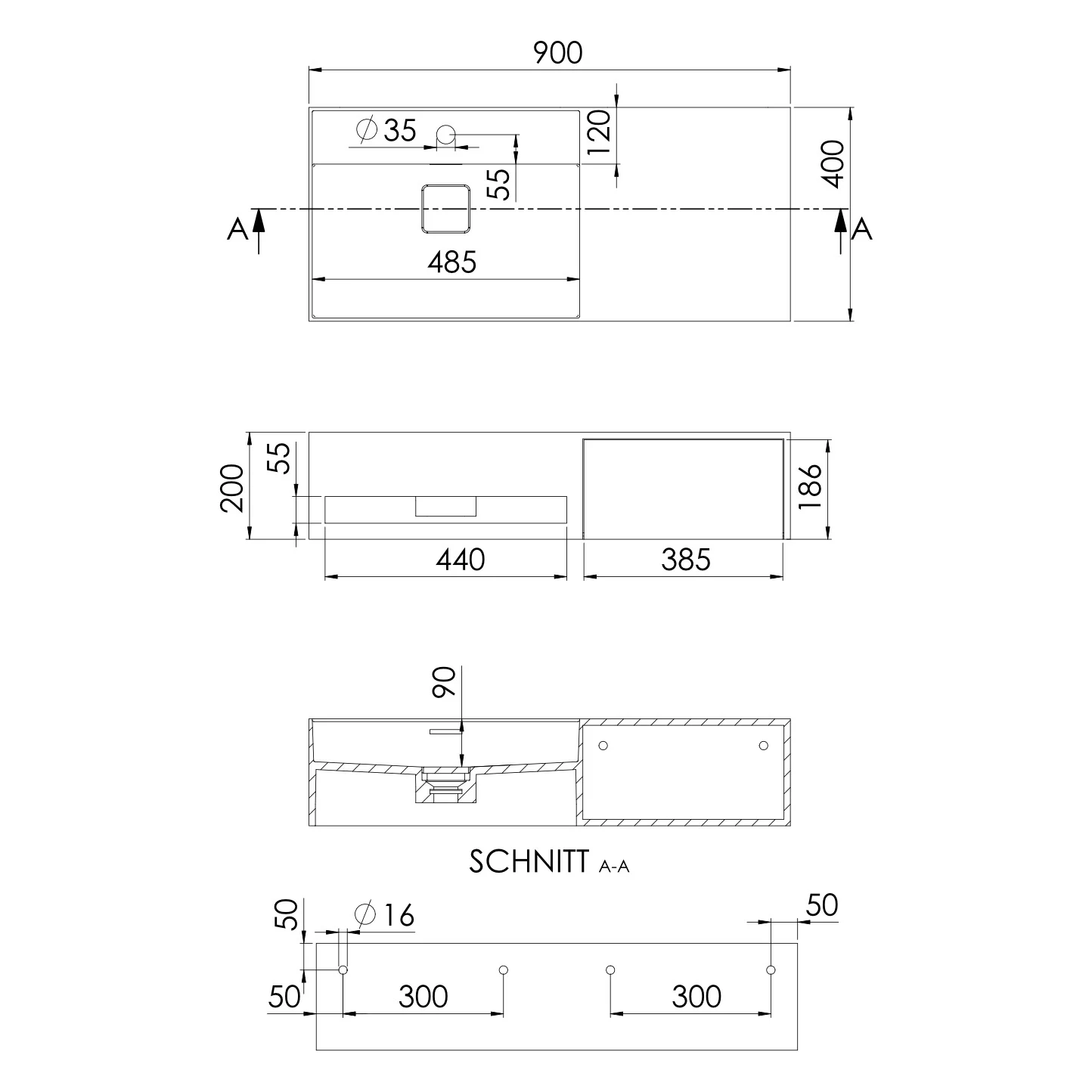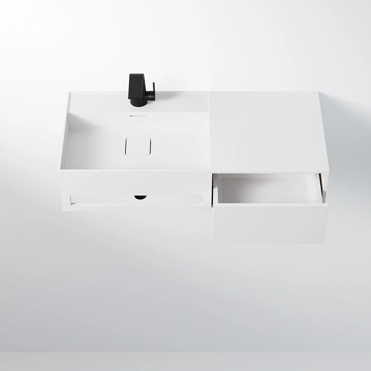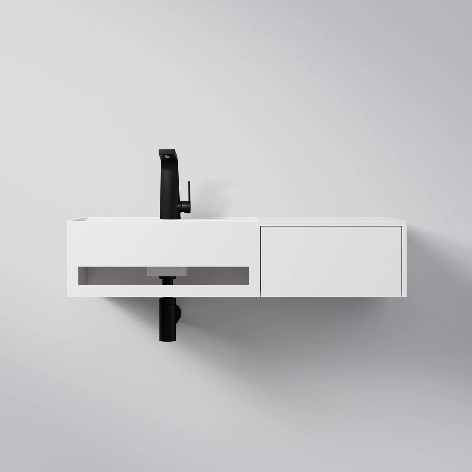Steinberg Serie 443 Wandwaschtisch mit 1 Auszug rechts aus Mineo Stone 90 x 40 cm