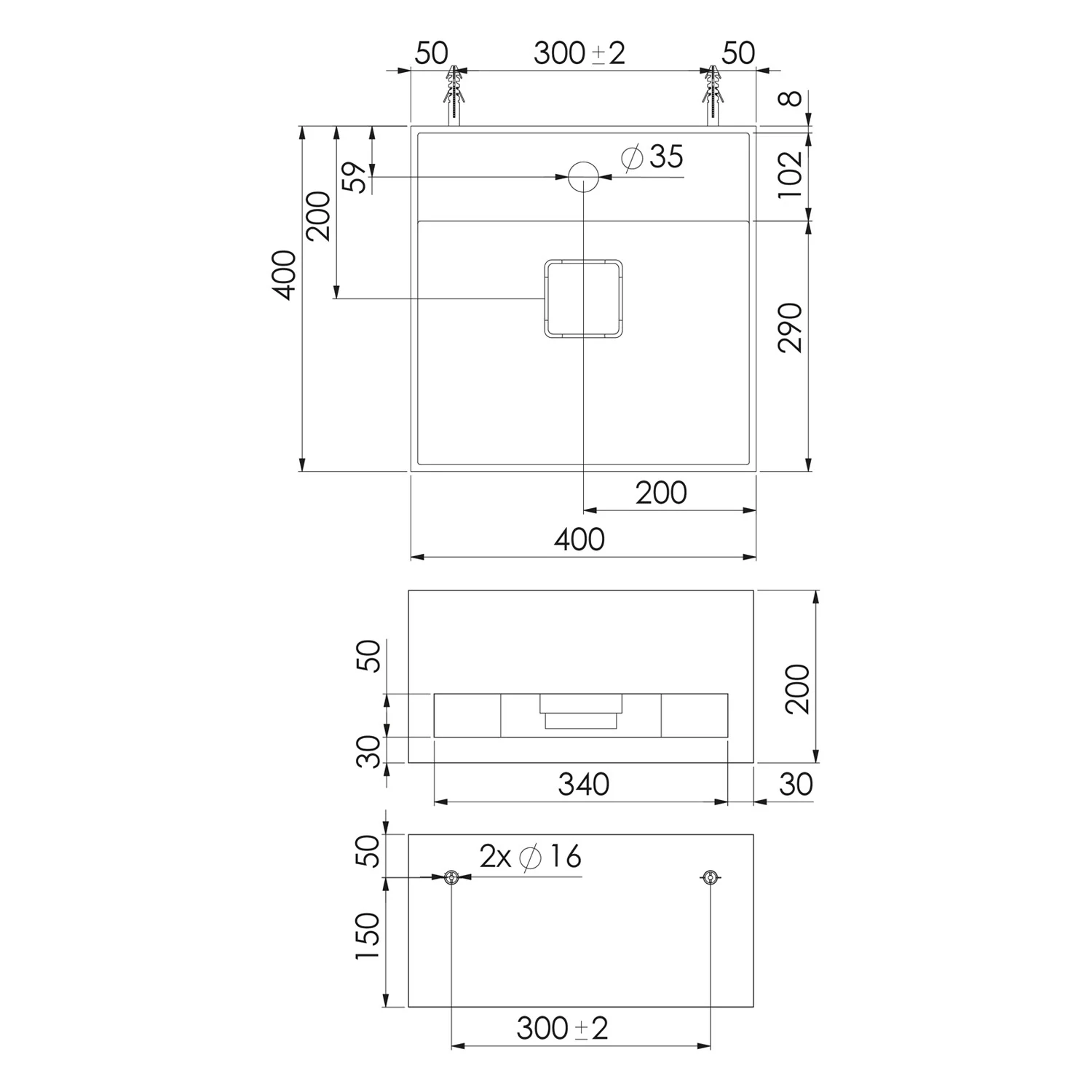 Steinberg Serie 443 Wandwaschtisch mit Handtuchhalter aus Mineo Stone 40 x 40 cm