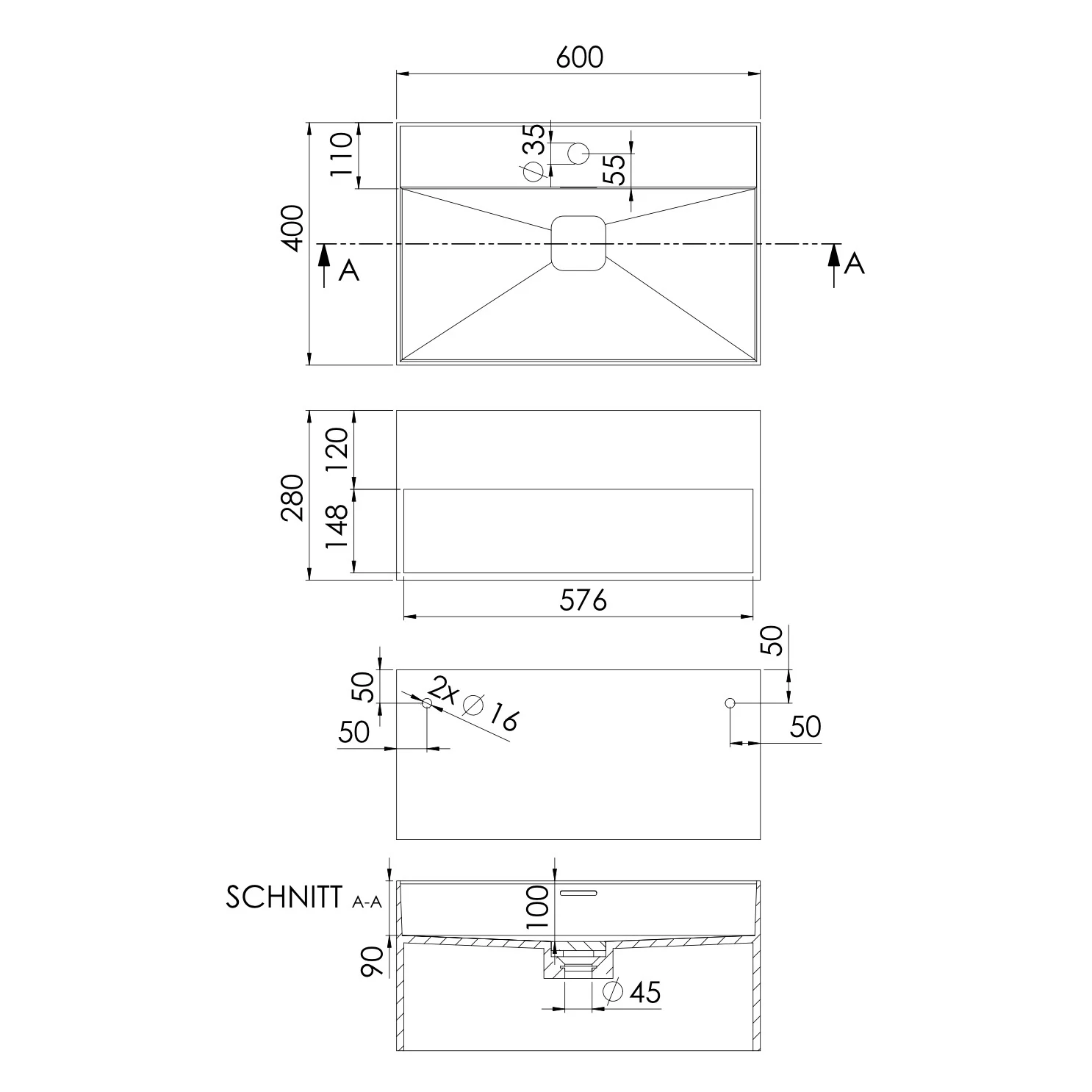 Steinberg Serie 443 Wandwaschtisch mit offenem Fach aus Mineo Stone 60 x 40 cm