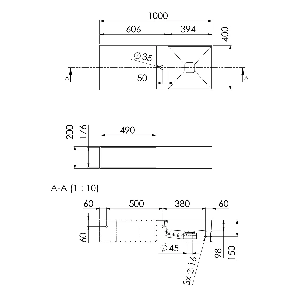 Steinberg Serie 443 Wandwaschtisch mit offenem Fach links aus Mineo Stone 100 x 40 cm