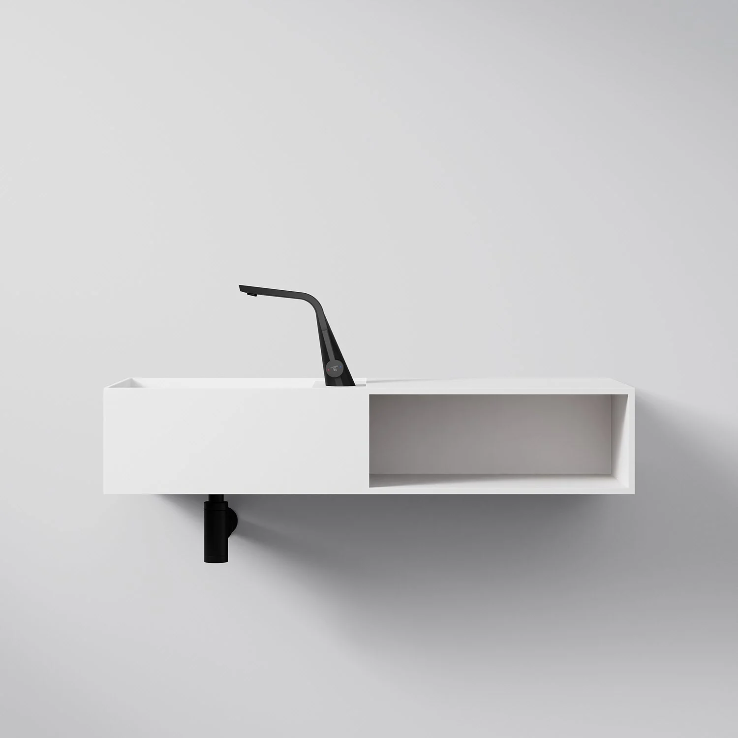 Steinberg Serie 443 Wandwaschtisch mit offenem Fach rechts aus Mineo Stone 100 x 40 cm