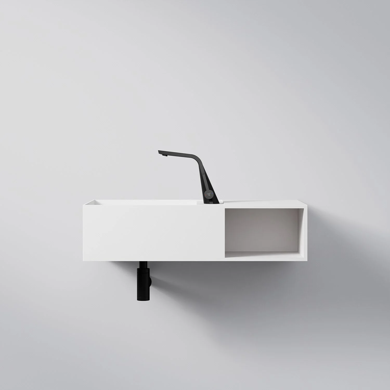 Steinberg Serie 443 Wandwaschtisch mit offenem Fach rechts aus Mineo Stone 80 x 40 cm