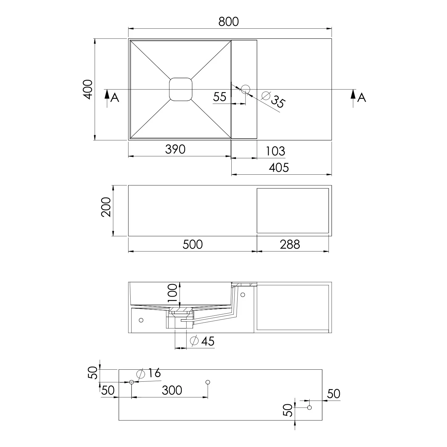 - mit 1 Hahnloch, mit Überlauf