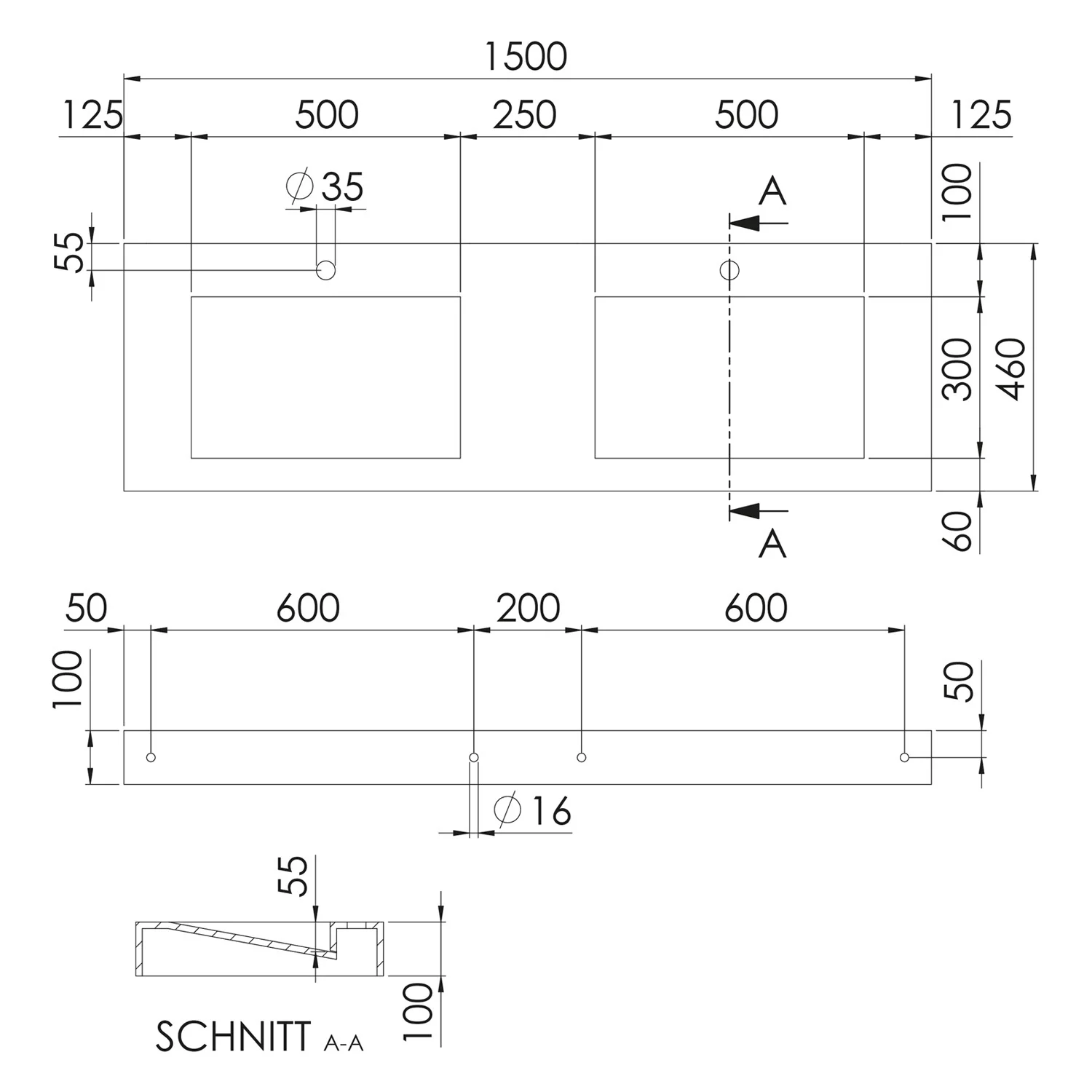 Steinberg Serie 444 Doppelwaschtisch aus Mineo Stone 150 x 46 cm